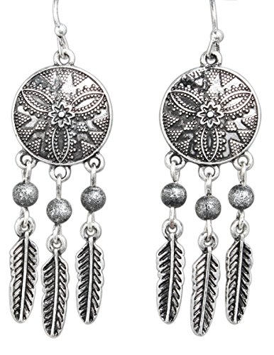 -. Feature : 2.25" oxidized silver-plated dangle earrings / Features 1.75" dreamcatcher charm / Fish hook backing with rubber stoppers