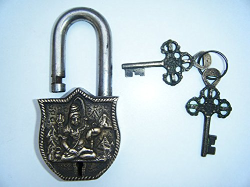 Purpledip Handmade Brass Antique Pad Lock with Mahadev Idol (10011)