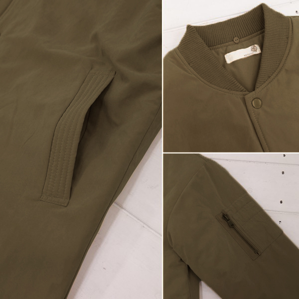 とても細かい繊維を起毛させて短く切りそろえた 桃の皮の表面のような風合いを持つ"ピーチ生地”で作られたブルゾン。 カジュアルなデザインと、ピーチ生地の持つ上品さが合わさった素敵な1枚です。