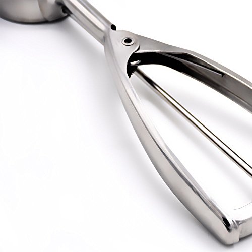 TOP QUALITY AND SOLID ENOUGH - Our ice cream scoop made from high quality 18/8 stainless steel by high polish finish technology, solderless joint technology and delicate rivets, which makes it durable and solid enough to make perfect ice cream balls