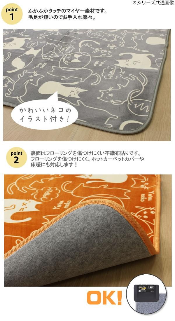 fk094igrjsもっちりとした肌触りが気持ちいいラグですホットカーペットカバーとしてもご使用いただけます サイズ 約200×250cm 個装サイズ:45×65×12cm 重量 個装重量:3300g 素材・材質 表地:ポリエステル100%(ポリマイヤー) 裏地:ポリエステル100%(不織布) 中材:ウレタンフォーム5mm 仕様 洗濯機使用可(ネット使用) 生産国 中国 かわいいネコのイラスト もっちりとした肌触りが気持ちいいラグですホットカーペットカバーとしてもご使用いただけます