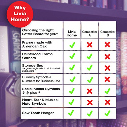 - UNRIVALLED QUALITY – Our signs are made with the highest quality 12 x 18 inch American oak frames with reinforced corners and the best materials. Words stand out beautifully with our ¾” Helvetica white plastic interchangeable symbols and lettering against thick black felt.