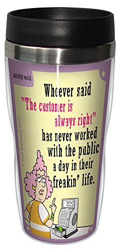 Tree-Free Greetings 16-Ounce Sip 'N Go Stainless Lined Travel Mug, Aunty Acid Customer's Right (SG78563)
