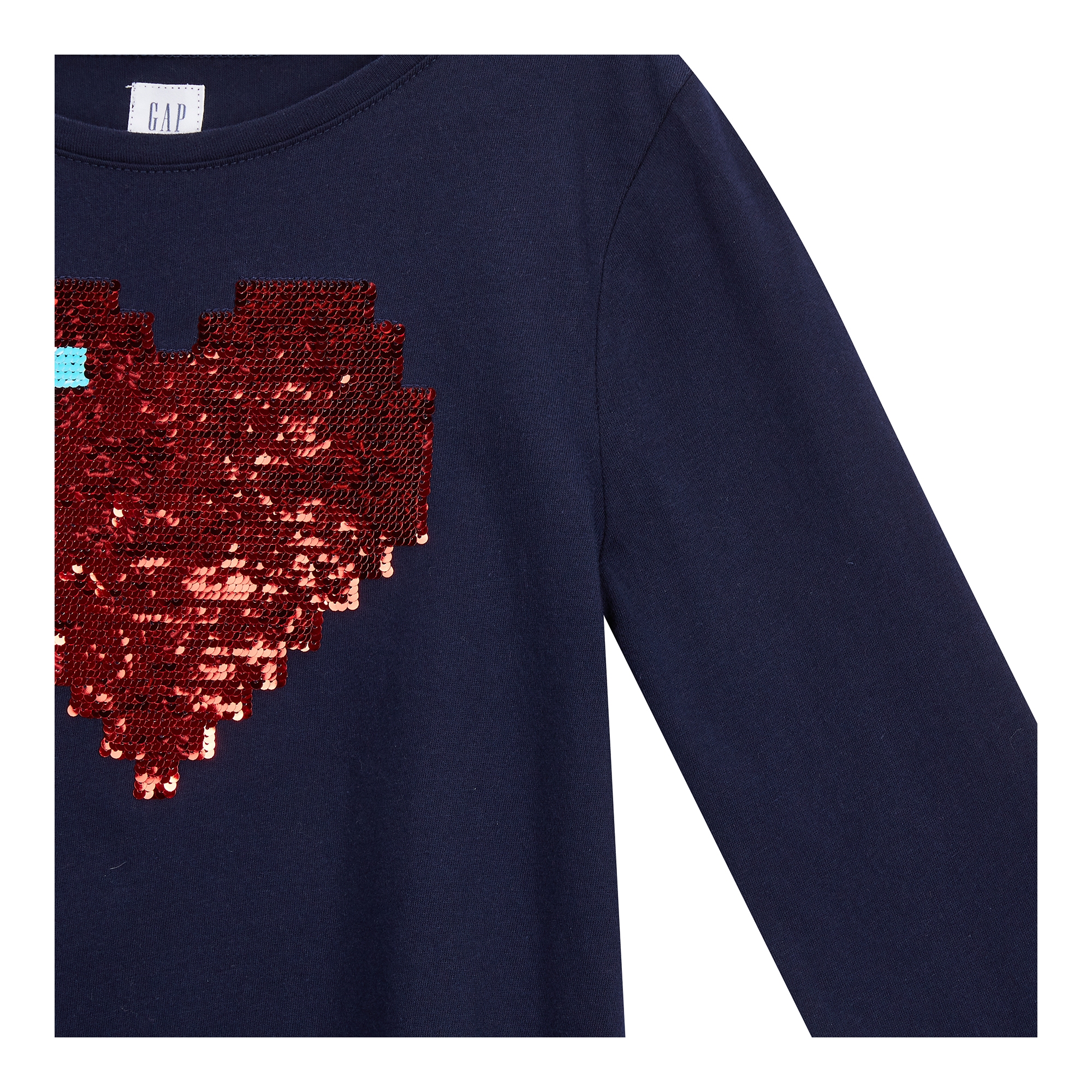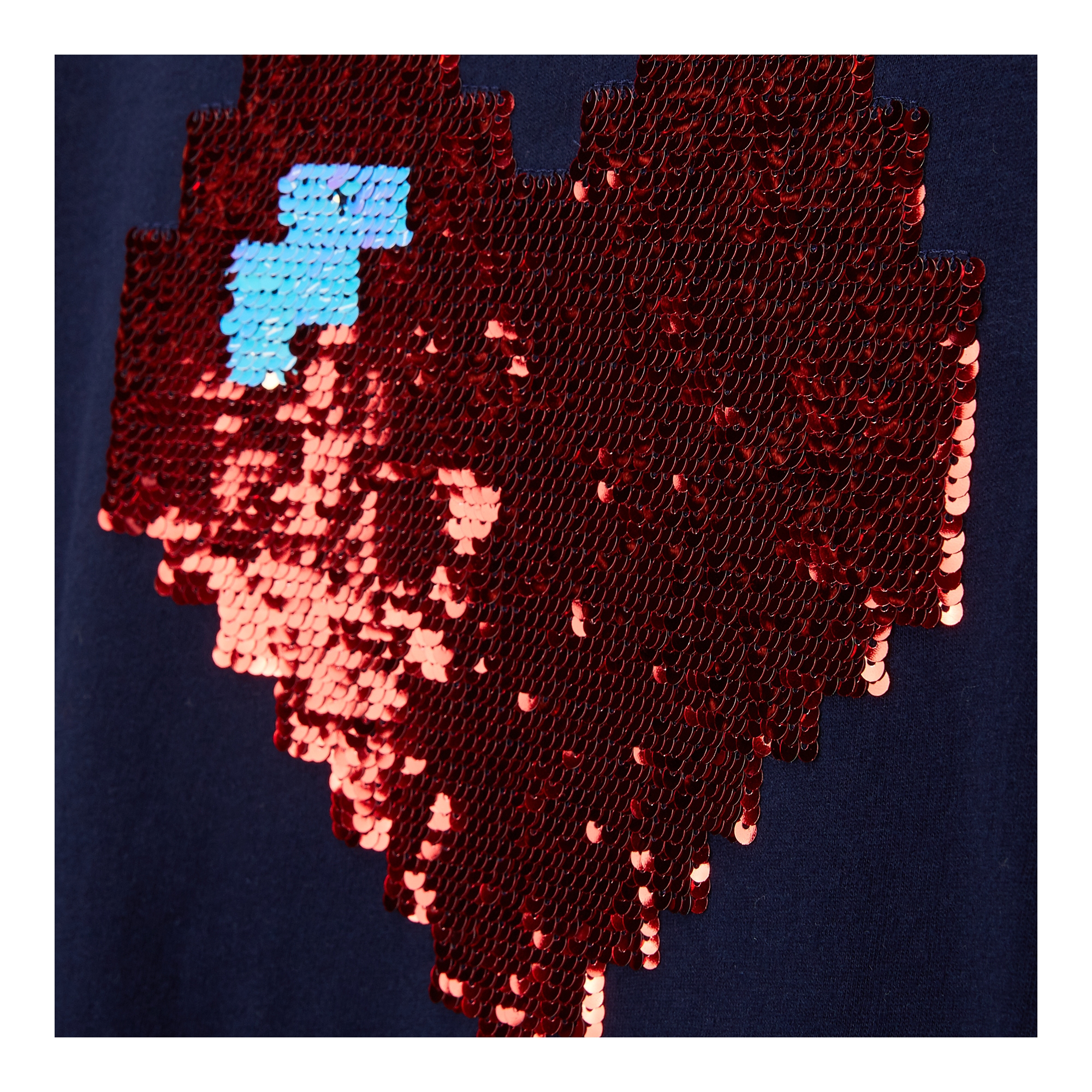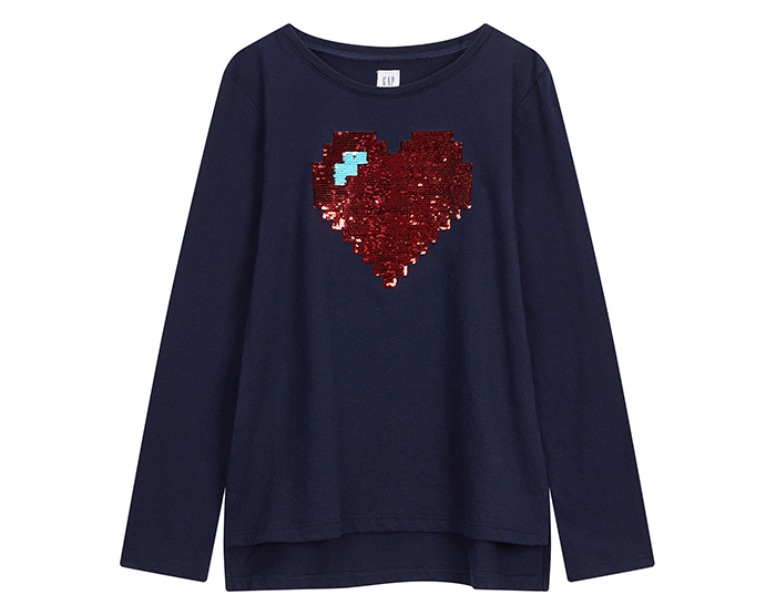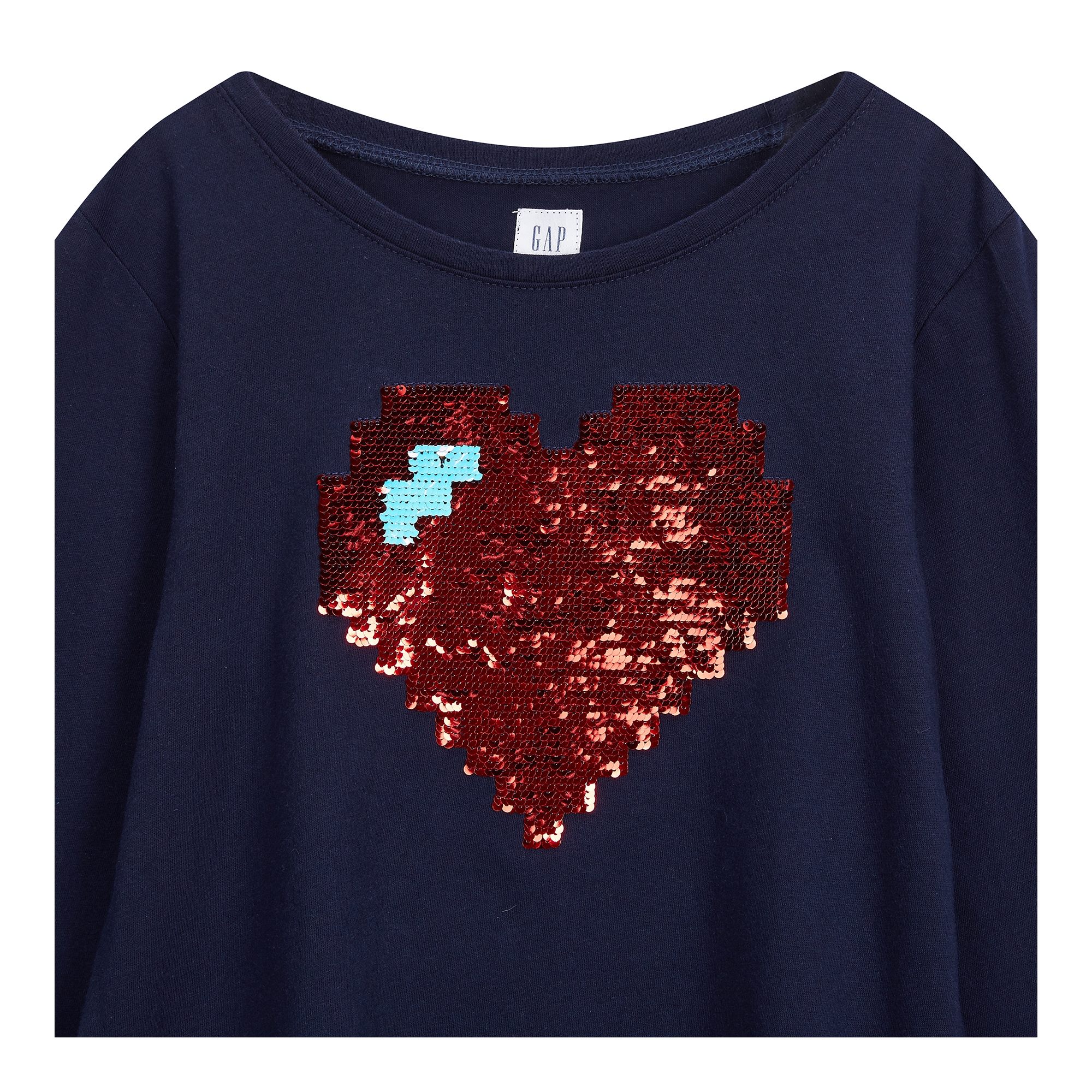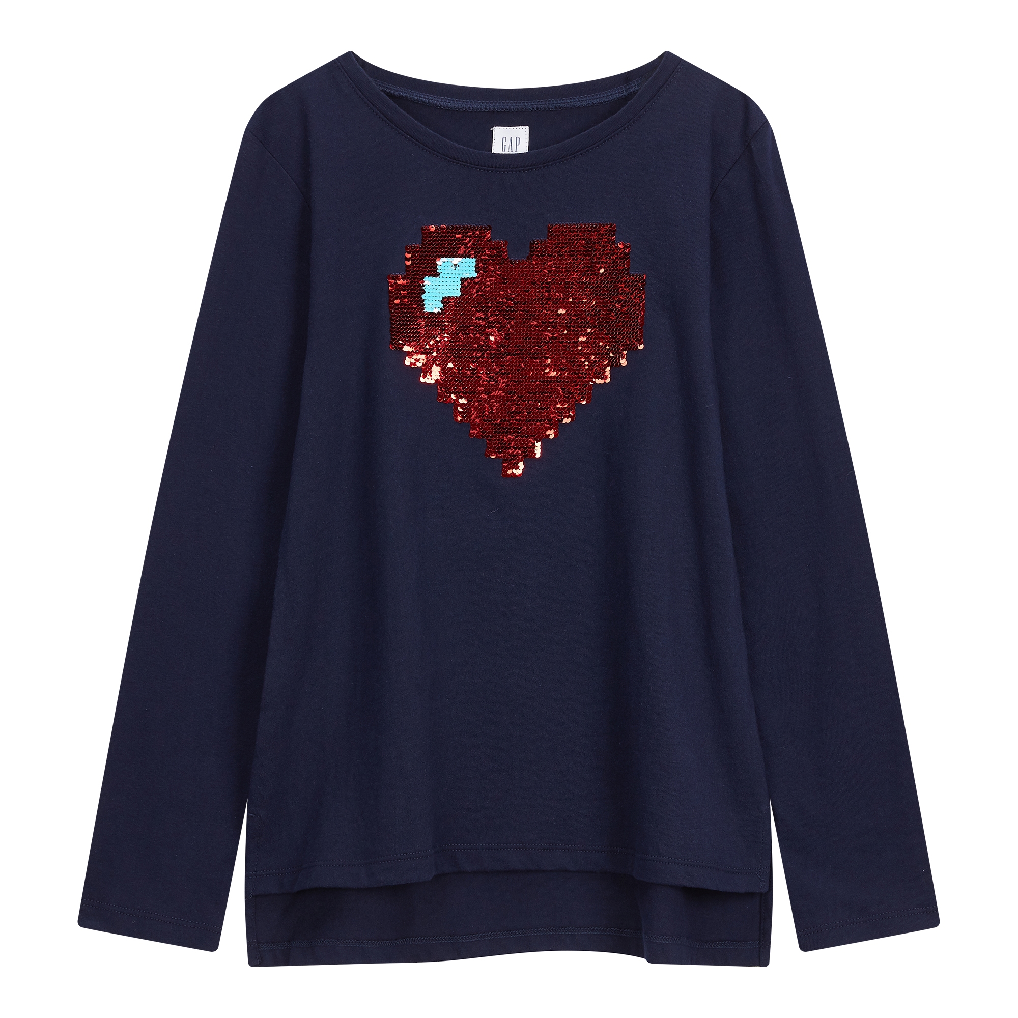 - 스팽글 하트 장식 디테일이 돋보이는 캐주얼한 무드의 티셔츠