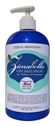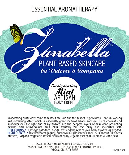 INVIGORATING MINT BODY CREME 16 OZ by Zanabella Plant Based Skincare. Invigorating Mint Body Creme stimulates the skin and the senses with Pure Essential Oils including Peppermint Oil. It provides a natural cooling and refreshing effect which is especially great for tired hands and feet. Coconut and Sunflower oils are light and easily absorb into the deepest layers of the skin while promoting healing and rejuvenation! Your skin naturally will feel silky and incredibly soft. UNISEX.