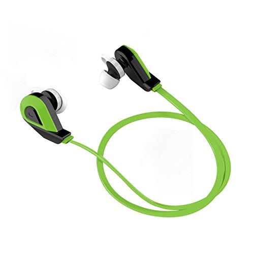 -. Feature : Latest Wireless Bluetooth 4.1 Technology with A2DP stereo music and AptX pure, clear sound, ideal for high quality music while running, jogging, cycling, skating, etc / Built-in rechargeable Lithium battery lasts up to 4.5 hours of talk / play time or 175 hours standby, universally compatible with most Bluetooth-enabled phones. Works with iPhone, iPad, Android and Windows Smartphones tablets and other Bluetooth devices / Good noise isolation to create the optimal environment for listening to your favorite tunes, built-in microphone with noise cancellation for clear calling and friends chatting / Sweat-proof, light weight and ergonomic design to enhance your comfort; comes with interchangeable earbuds and ear hooks for secure and personal fit when walking or exercising / Superbly comfortable rubber adapters and unique design ensure that earphones always stay in place no matter your level of activity. 3 different sizes of ultra-comfortable earbuds ensure you get that perfect fit.
