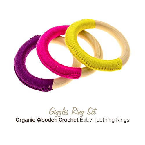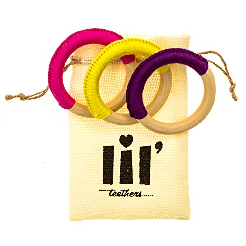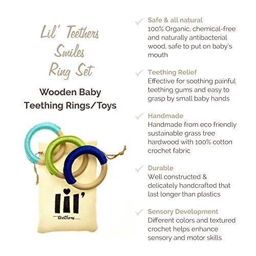 -. Feature : Lil' Teether's Hand-made, Organic, Natural and Untreated Wooden Teething Rings are great for your teething baby. All rings are smooth to touch, and 100% hand crocheted with organic cotton passed by the CPSC. Our wooden toys are educational toys, with bright colors that stimulate baby's senses, develops grasping, sensory stimulation, fine motor skills and spatial learning. / Baby Teething is natural but painful-Lil' Teether offers natural relief in the form of a wooden toy set. Lil' Teethers Wooden Toys are inspired by both Montessori toys and Waldorf toys, which means baby is learning while teething. Our rings 100% natural, made from the Grass Tree. / Sensory toys like these are important for little babies and pediatricians and educators encourage parents to offer approP.R.Iate educational toys that will encourage intellectual simulation, like Montessori materials. Easily attach the rings to a stroller, car seat, jumper, pacifier clip, etc. / Lil' Teethers Wooden Toys for babies are 2.7 inches in diameter. They are safe for little hands to grasp, safe to handle and chew on, and fun to play with-they make great toddler toys too. They're also one of the best baby gifts because they arrive in a gift bag, ready to offer as a baby shower gift. / Lil' Teethers come with a 100% Manufacturers Money Back Guarantee - return it, no questions asked, if baby doesn't love it.