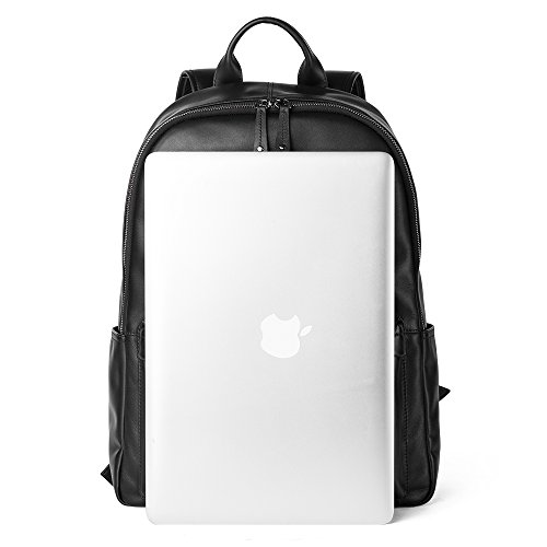 -. Feature : 100% Genuine Leather Smooth / Zipper pocket can hold pens or Pencil case,and small things, and 1 back zipper pocket fit phone such as iphone6s; inside 1 zipper and 2 open pockets fit small things like wallet or phone, 2 pen holders, 1 key holder, 1 laptop compartment besides 1 main pocket fit lots of books or clothes. / 13" wide 16.9" high, Do have compartment fit laptop up to 15", perfect fit for 13" Macbook. / Stylish:Unique Design with Classical looking, which makes it perfect for any occasion with any outfit,no matter for school, trip or business, commuter even go to the gym, it just do its work. / Dry Clean Only.