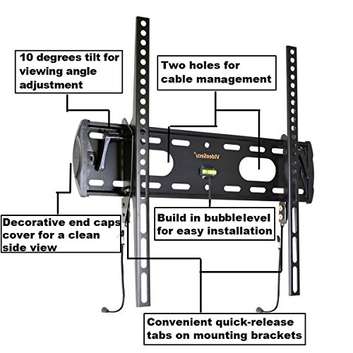 -. Binding : Accessory -. Brand : VideoSecu -. Color : Black -. EAN : 0696720452597 -. Feature : Fit majority of 26" 27" 32" 37" 40" 42" 46" 47" 50" 52" 55" plasma LCD LED TV with mounting hole pattern 200x100 to 400x400mm (please check TV weight) / The steel construction offers loading capacity up to 55 lbs / Tilt forward up to 10 degrees for viewing angle adjustment; New end caps cover locking for a clean side view / Convenient quick-release tabs design on both mounting brackets; Mounts to any stud separation up to 16 inch / Standard mounting hardware included -. Label : VideoSecu -. Manufacturer : VideoSecu -. Model : MP409B -. MPN : MP409B -. PackageQuantity : 1 -. PartNumber : MP409B -. ProductGroup : Speakers -. ProductTypeName : AV_FURNITURE -. Publisher : VideoSecu -. Studio : VideoSecu -. Title : VideoSecu TV Wall Mount Tilt Low Profile Ultra Slim Television Mount Bracket for Most 26"- 47" LED LCD Plasma TV, Some up to 55" TV with VESA 200x100 to 400x400 1FE -. UPC : 799472247647