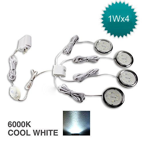 ☀ Cool White 4 Pack Round Panel, Individual Under Cabinet Panel has 90 Lumen, bright 12 intensity LED and only uses 1 Watts maximum, which means they are low cost to run in your home. The whole set offers you 360 lumen, 4W. CRI is over 80