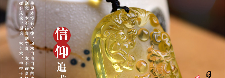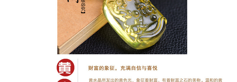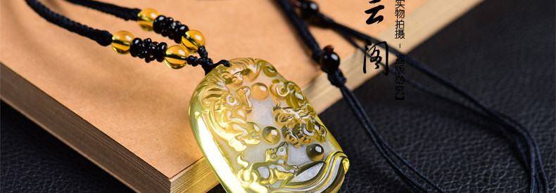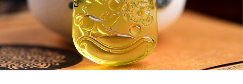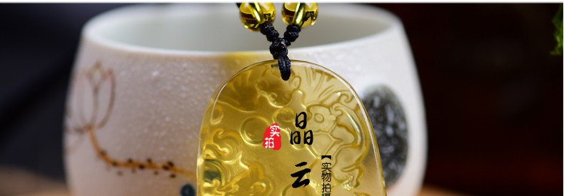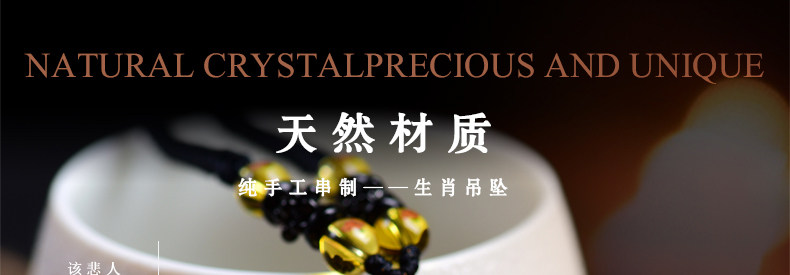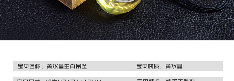 开光天然黄水晶申子辰吊坠 生肖属鼠龙猴三合贵人男女项链饰品
