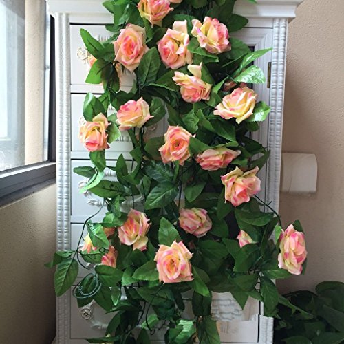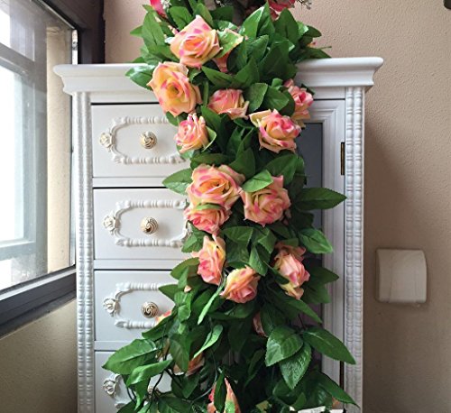 - Each garland 8.2 FT Long,Flowers 2 inches in diameter,Each garland holds about 45 leaves,45 flowers.Color: Pink.