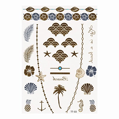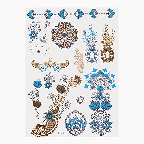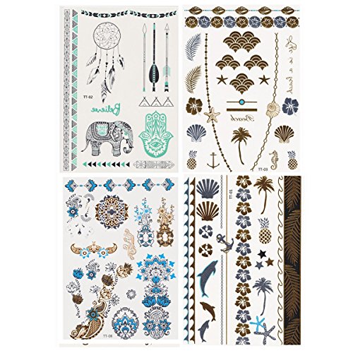 Fun of Jewelry Metallic Golden and Silver Temporary Tattoo Fake Tattoo Waterproof Non-toxic Tattoo Stickers Assorted Set of 4 Pcs: Color B