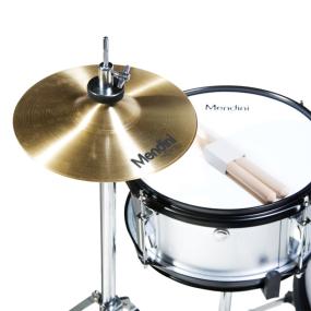 Genuine brass 10” crash and 8” hi-hat cymbals are durable enough to provide years of enjoyment while sounding great.