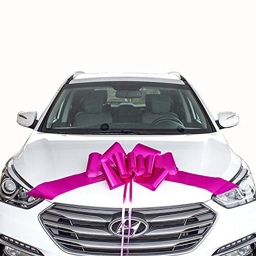 23 inch Large Vibrant Pink Bow with Suction Cup Included - Big Ribbon Perfect for Cars, Oversized Gifts and Decoration