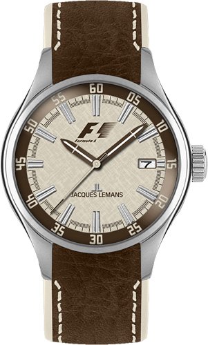 mattiertes Edelstahlgehäuse, verschraubter Boden, Crystex Mineralglas, wasserdicht geprüft bis 10 bar, braunes Lederarmband mit weißer Ziernaht, beige eingefasst, mattierte Edelstahldornschließe mit Logogravur, präzises Quarzwerk, Datumsanzeige, Zifferblatt sandfarben, dunkelbraunes Rand, Leuchtzeiger, zentraler SekundenzeigerFeature
