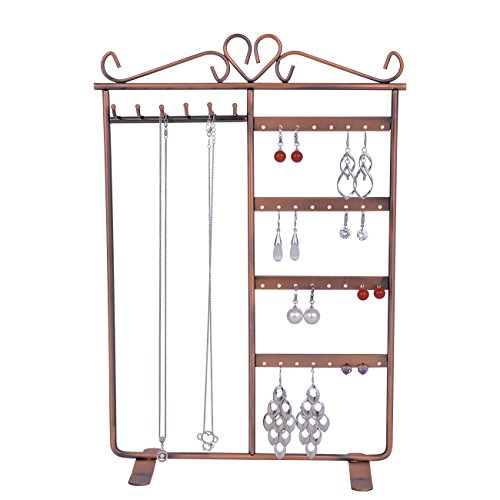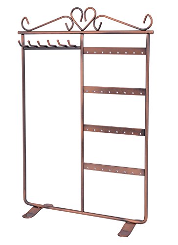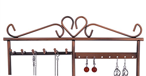 Earring Necklace Bracelet Jewelry Hanger Organizers Holder Sangyn Classic Metal 32 Holes 6 Hooks Display Tower (Bronze)