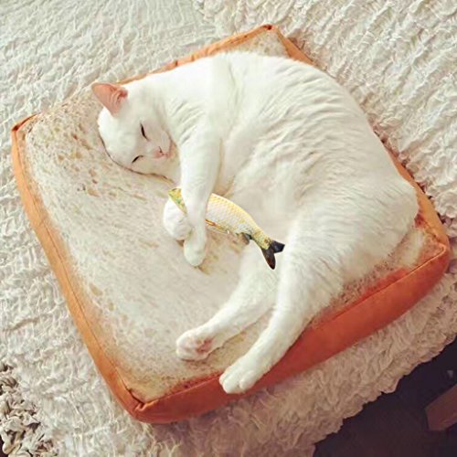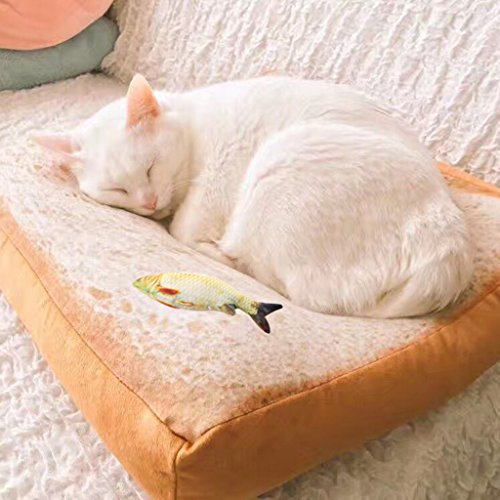 - Removable, machine washable cover for easy cleaning. - Made of high quality fabric filled with high density sponge, offers maximum comfort and warmth for your lovely pets.The bed will allow them to relax and rest more easily and will make finding a comfortable position easier to maintain. - Vivid fish design toy made from environment-friendly colorant, skin-friendly material, does no harm to pet skin and can draw your cats interest. - Great combo products for your pet! Give your pet a warm pet bed and a funny toy.