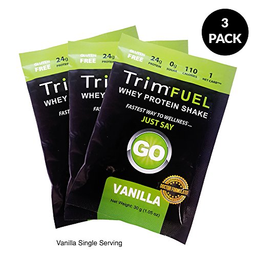 -. Feature : 3 Individual Packages of Vanilla -Great tasting whey protein isolate is gluten free, low fat, low calorie, and low carb / Fortified with minerals, vitamins, amino acids, and antioxidants, Gluten Free, Sugar Free / Trim Fuel Protein has more protein and less carbs, fat and calories than other leading brands / Great for weight loss or general nutrition Blend or mix with 6-8 ounces of water, fat free milk, soy milk or almond milk / MADE IN THE USA