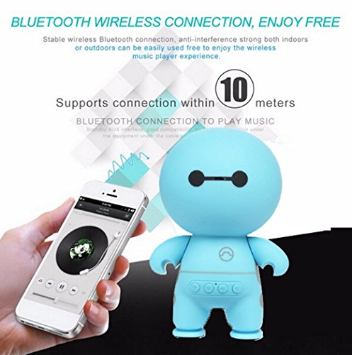-. Feature : Cartoon Bluetooth Speaker: 3w loudspeaker sound loud and vigorous / Speaker support: Bluetooth, call function, radio, card, U disk, plug-line playback, mobile phones, desktop computers, notebook computers, tablet PCs and other equipment common / Built-in 500 mA aluminum shell battery, medium volume up to 3 hours or so. / Bluetooth 4.0 Technology: Compatible with all Bluetooth-enabled devices. Instantly connect to your smartphone or tablet from up to 33 feet away. / SoundCore reconnects automatically to the last device used. Built-in mic for hands free calls.