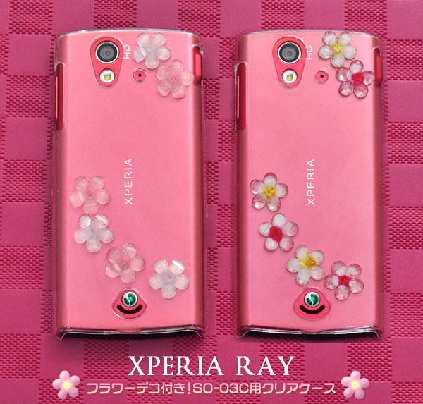 | キュートなフラワーデコ付きのXperia ray SO-03C用クリアケース | | | |
