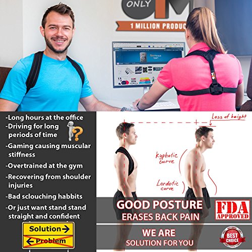 Posture Corrector for Women & Men + Resistance Band for Upper Back Pain – Adjustable Posture Brace for Improve Bad Posture by Only1MILLION