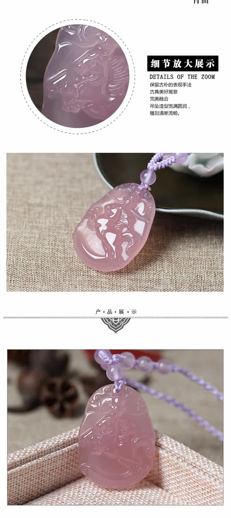 单独开光天然粉紫玉髓十二生肖马跃龙塔吊坠