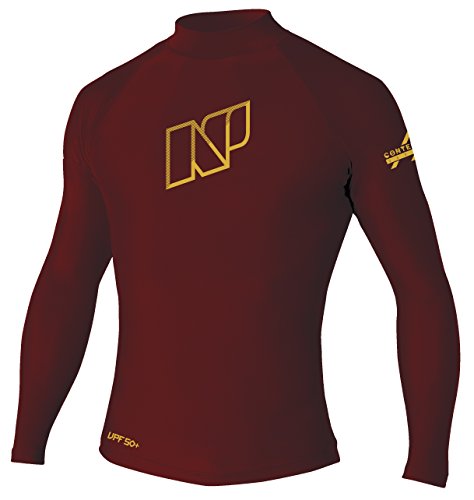 NP Surf Contender Long Sleeve Rash Guard Water T-Shirt with Sun Protection, Maroon, X-Small