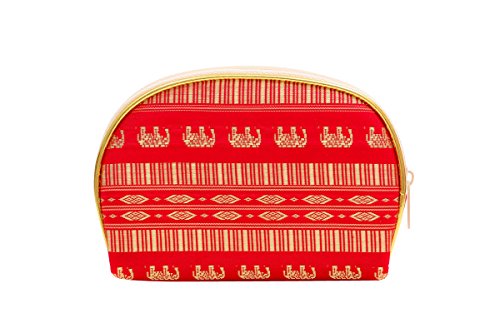 Red Elephant Pattern Half Moon Cosmetic Beauty Bag Travel Handy Organizer Pouch Makeup