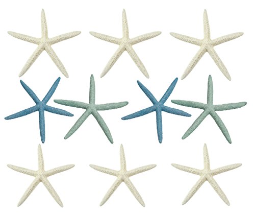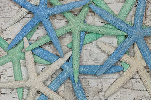 Finger (Pencil) Starfish Mix - 10 Large Pieces 6-8" inches (6 White Finger, 2 Finger Dyed Pastel Blue, 2 Finger Dyed Pastel Green Colors) by The Seashell Company