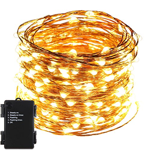ER CHEN(TM)Indoor and Outdoor Waterproof Battery Operated 200 LED String Lights on 66 Ft Long Ultra Thin Copper String Wire with Timer (Warm White)