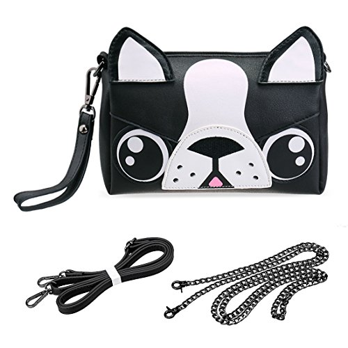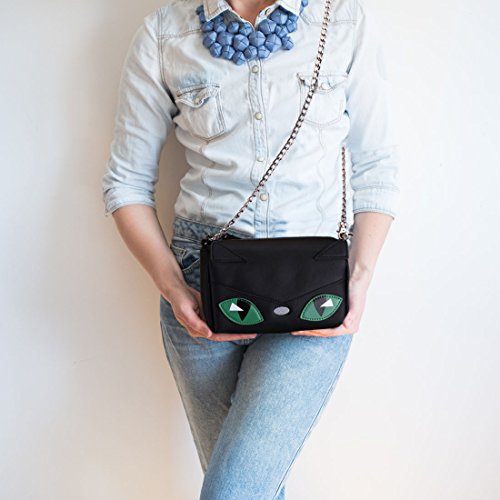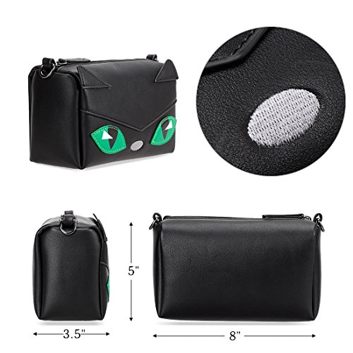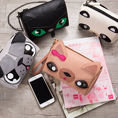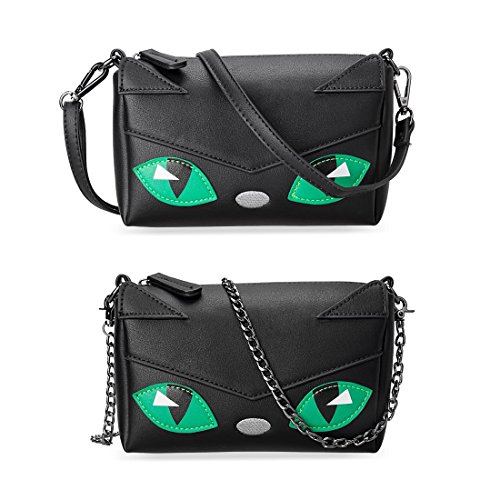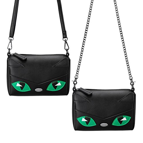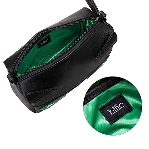 Our cute black cat face purse lets you take your favorite animal anywhere you go. Each of these handbags are designed with a boxy, rectangular shape to protect your belongings and allow enough room for everything you need: wallet, makeup, keys, iPhone, notepads, etc. The spacious main compartment interior features soft lining with an open side pocket for organizing and quickly accessing smaller items. All of your daily essentials will be safely protected with the full-length zipper closure at the top. With 3 different interchangeable straps, you can change your bag to match the occasion. Use as a clutch, wristlet, purse, shoulder handbag, or crossbody messenger bag! You'll receive (1) 50 inch long matching color faux leather shoulder strap, (1) 54 inch crossbody chain, and (1) 5.5 inch faux leather wristlet strap. Faux PU leather materials make this bag durable for everyday use and the perfect gift and clothing accessory for kids, tweens, teens, women, and animals lovers of all ages. This is a great purse for afternoon trips to the library or school, casual hangouts, and weekend evening occasions. Show some love for cats, dogs, and pandas, too! Choose from 5 adorable animal face designs! Dimensions: 8in (L) x 3.5in (W) x 5in (H). *NOTE*: Due to differences between monitor displays, actual color may vary slightly from image. b.m.c is a registered trademark of Remi Collections LLC and is exclusively distributed by Bundle Monster. The b.m.c trademark is protected by US Trademark Law.Feature