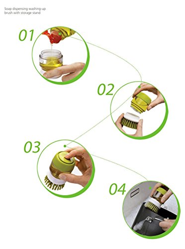 -. Feature : Wholesale Palm Scrub Soap Dispensing Washing-Up Brush / Storage Stand Soap dispensing palm brush with storage stand / ABS+PS+304 stainless steel + silica gel / Easy Fill / Compact Size