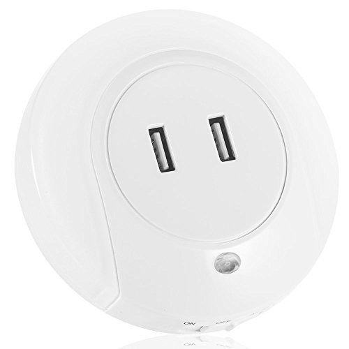 LED Night Lights with Dual USB Wall Plate Charger for iphone 6 S7 edge,nightlight outlet Charging for Hallway,Bathroom,Living Room, Kitchen (White)