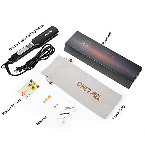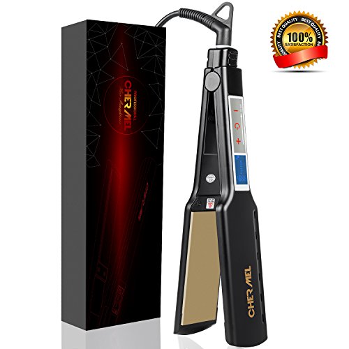 Flat Iron Hair Straightener Professional Nano-Titanium 449F 1.75 Inch Salon High Heat Anti Frizz LCD Dual Voltage BLACK XL CHERMEL
