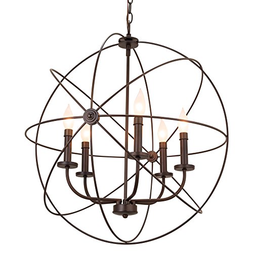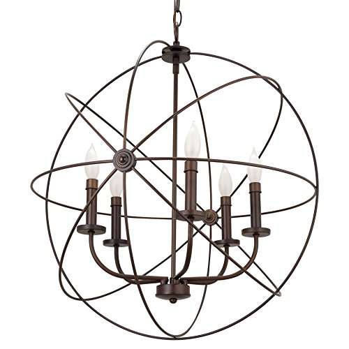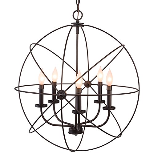 The Orbits 24" 5-Light orb chandelier with bronze finish is a sleek, modern fixture that would look great in a foyer, over a dining table, staircase, entryway or in a full-sized kitchen. It is UL approved for your safety, unlike some low-priced competing products. The main design theme of this chandelier / large pendant light is the 5 gorgeous intertwining rings, giving the overall light a very luxurious look. At the center of this orb chandelier are the candle lamp holders. Subtle design elements like the candle stand collars and sleeves with ring add sophistication and elegance to this sphere chandelier, completing the final touch. The bronze finish is suitable for modern / contemporary setting, or modern industrial interior. This chandelier also comes in a chrome finish that fit well in warm, classic, or industrial settings.