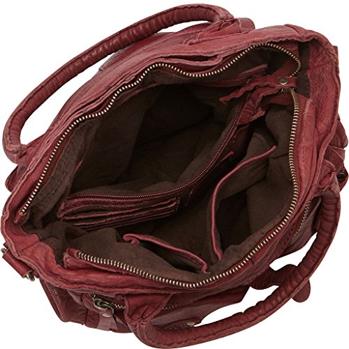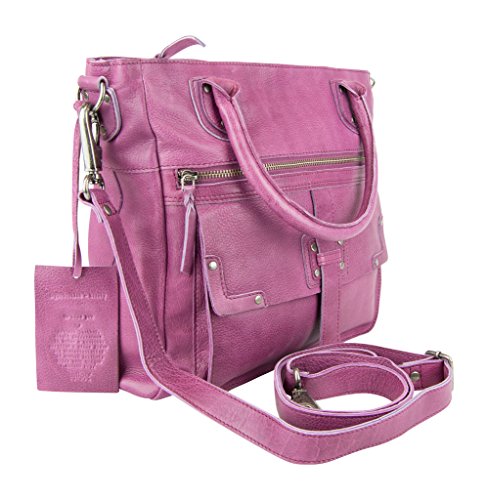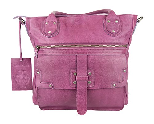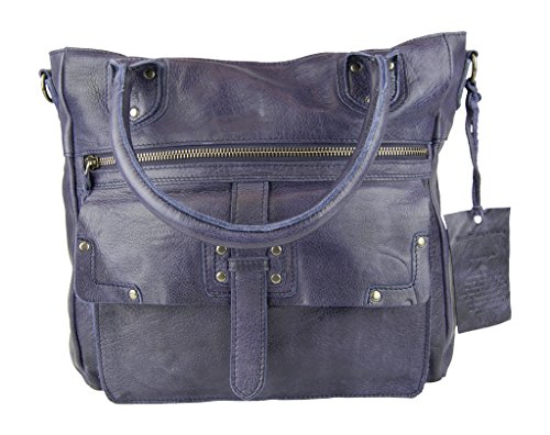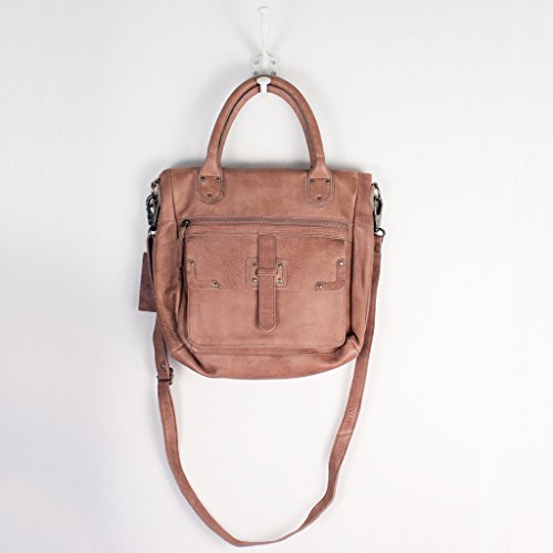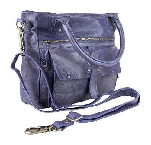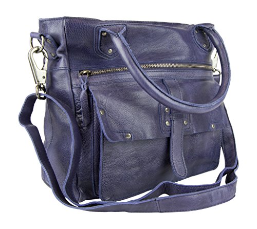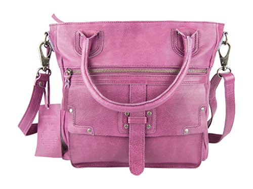 Studio : Latico Publisher : Latico Binding : Apparel Product Description 100 percent leather 1 wide adjustable detachable cross body strap 12.5 minimum 25 maximum drop plus 2 3/4 rolled carry handles exterior front flap features magnetic snap closure. Stud details. Underneath flap is open pocket. Zip pocket above flap. Exterior back features flap over zip pocket. Interior front features 2 open slit pockets interior back feature organizer with large zip pocket,5 credit card slots and 3 pen holders fully lined (yellow and tan with nylon lining. Black, Chocolate grey and wine with cotton lining. 0