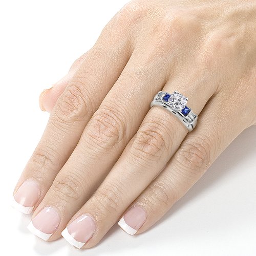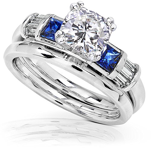-. Binding : Jewelry -. Brand : Kobelli -. Department : womens -. Feature : Main stone is a 6mm Genuine Kobelli Moissanite / Side stones are sapphire and 100% natural conflict-free diamonds / Set includes one engagement ring and one solid gold wedding band / Solid 14 karat white gold high polish rhodium finished / Complimentary jewelry gift box included -. Label : Kobelli -. Manufacturer : Kobelli -. Model : MZ61425CU-EG -. MPN : MZ61425CU-EG -. PartNumber : MZ61425CU-EG -. ProductGroup : Jewelry -. ProductTypeName : FASHIONRING -. Publisher : Kobelli -. Studio : Kobelli -. Title : Cushion Moissanite Bridal Set with Sapphire and Diamond 1 1/2 CTW 14k White Gold