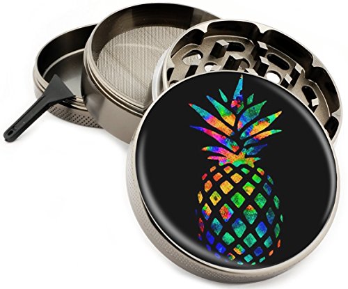 Rainbow Pineapple Colorful 4 Piece Large Silver Aluminum or Zinc Metal Herb Grinder 2.5" Diamond Cut Titanium teeth (Zinc)