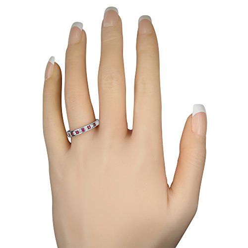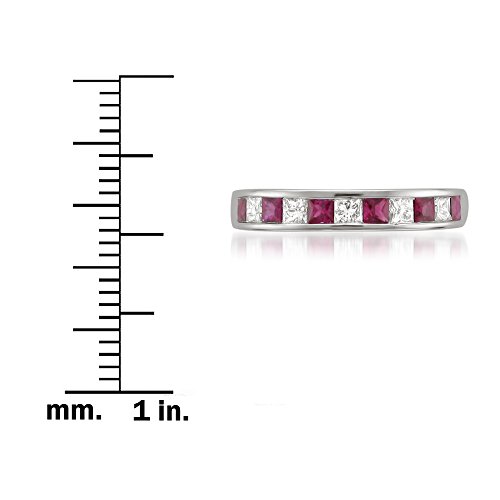 -. Title : 14k White Gold Princess-cut Diamond and Red Ruby Wedding Band Ring (5/8 cttw, H-I, I1-I2)