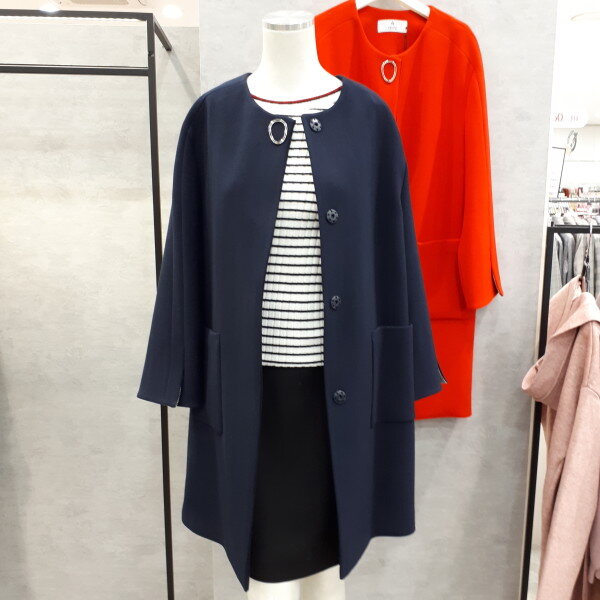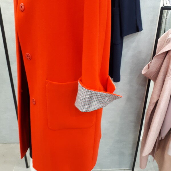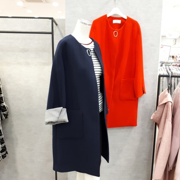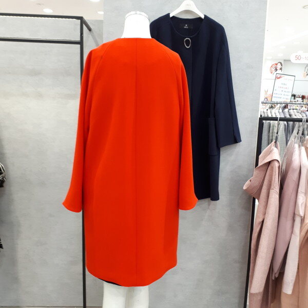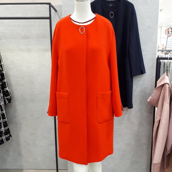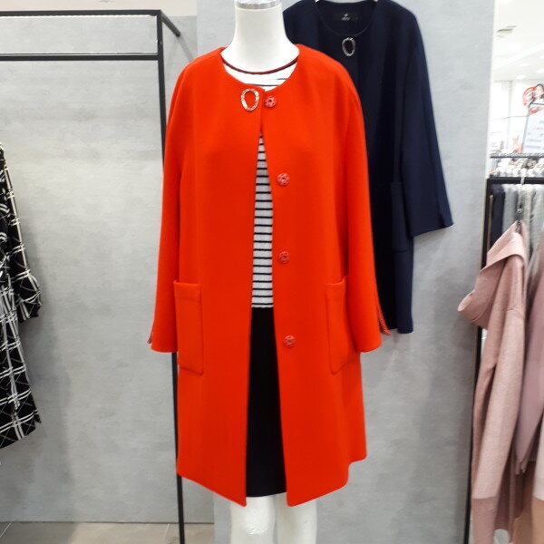 라운드 원포인트 롱자켓입니다. 소매에 배색이 있어서 접어서 8부로 입어보세요