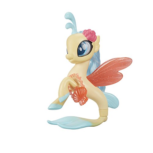 Princess Skystar has royal sea style! Inspired by My Little Pony the Movie, this 6-inch Princess Skystar seapony figure has a beautiful mermaid-like tail for imagining scenes in Seaquestria. Her eyes and wings are detailed with glitter! Keep the stylin' fun going with her long, colorful hair and underwater-themed accessories too. My Little Pony and all related terms are trademarks of Hasbro. My Little Pony: The Movie. Copyright 2017 My Little Pony Productions, LLC. Licensed by Hasbro.Feature