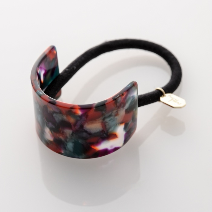 컬러풀한 대모갑(玳瑁甲)무늬의 커버 헤어 고무입니다.