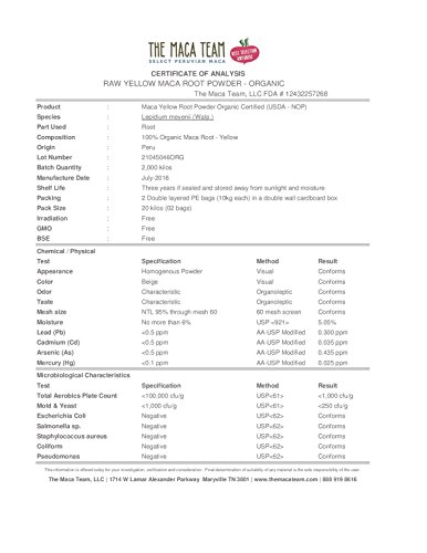 Made with 100% Raw Organic Peruvian Yellow Maca and USP Certified Sustainably Grown Palm Glycerin