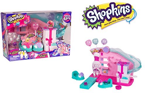 -. Feature : Each pack includes an Arcade Playset, 4 exclusive Shopkins, 2 bumper cars that seats both Shopkins and Shoppies, and 3 plastic balloons to decorate your arcade / Shopkins slide down into the gift box and pop out for a fun surP.R.Ise! / Try your hand at bowling with Strikey the bowling ball and the 3 bowling pin Shopkins: Pina Pin, Penny Pin, and Pippy Pin! / Bump around in the bumper cars, which seat both Shopkins and Shoppies / Display your favorite Shopkins inside of the plastic balloons!