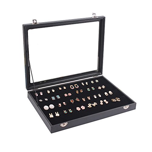 Elife Black Velvet 120 Holes Necklace Earring Ring Jewelry Organizer Tray Showcase with Cover