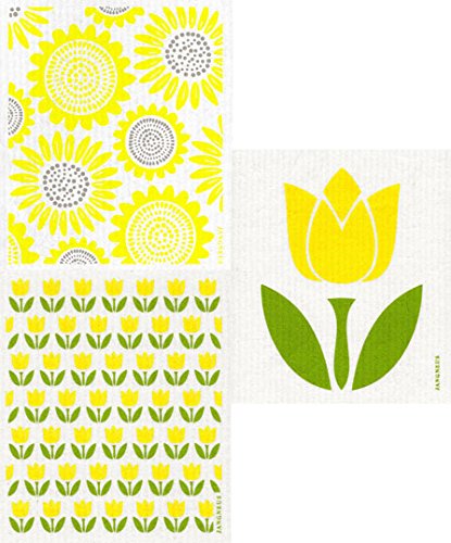 Swedish Dishcloth, (YT) Set of 3 Tulips & Sunflowers - YELLOW