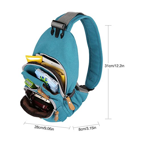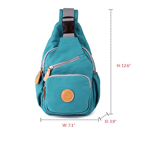 Measurements 1. Dimensions: 7.1" W x 12.6" H x 3.9" D 2. Chest Strap Drop (from chest to the strap): 12.5' - 16.1' Chest Strap Length (actual length of strap): 14.3' Chest Strap Width: 2.5' 3. Pocket size: (Zipped front big pocket): H: 5.1' x W: 4.9' Pocket size: (Zipped front small pocket): H: 3.9' x W: 3.9' Pocket size: (Zipped back pocket): H: 4.7' x W: 7' 4. Weight: 0.9 pounds