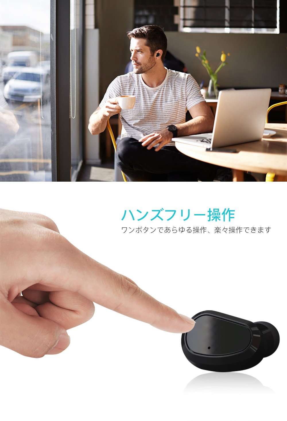 【オートペアリング&便利な智能操作】: W5 ワイヤレス イヤホンはイヤホンを取り出すだけで電源が入るので電源ボタンを押す必要がありません。イヤホン同士のペアリングが自動的にされ、あとはデバイスをOFFにして接続するだけで簡単にペアリング完成です。ワンボタンで音楽再生/一時停止、通話開始/終了/拒否/リダイヤルなどの操作を全て実現可能です。機械音痴でも楽々操作できます。