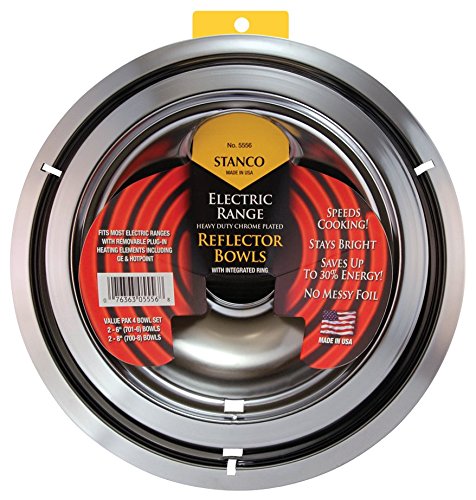 Stanco 4 Pack Universal Electric Range Chrome Reflector Bowls